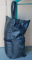 Tru Mark 35 pound sandbag with an added Velcro strap to hold the sandbag upright and around a canopy leg or similar vertical pole equipment item. Check out more photo album images of this